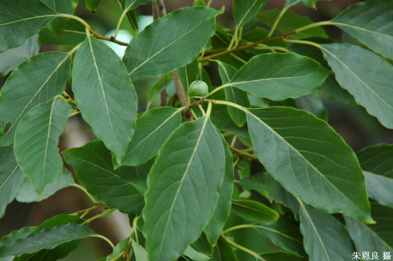 落葉喬木。葉紙質,卵至卵狀長橢圓形,長9-13 cm,先端銳尖至鈍,兩面光滑,上表面綠色,下表面略粉白,側脈6-8對;葉柄長1-2.5 cm。果球形,直徑約2 cm。 (楊遠波、劉和義、施炳霖、呂勝由 1999)