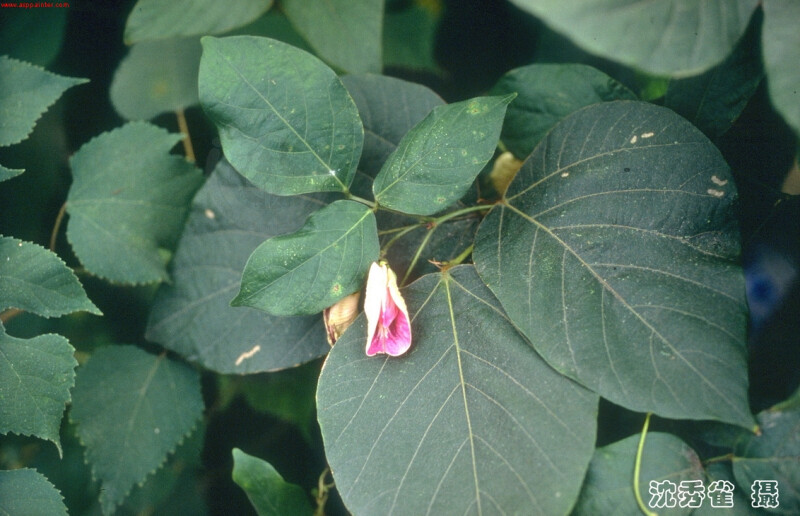 屬特徵- 藤本。三出複葉,具小托葉。總狀花序。花萼鐘型,上方二片合生,最底一片最長。花瓣蝶形,旗瓣具距。兩體雄蕊,9+1。莢果線形,縱脊。 種特徵-  多年生被毛草本。頂小葉橢圓形,長5-6 cm。花粉紅色。莢果長4-7 cm。 (劉和義、楊遠波、呂勝由、施炳霖 1998)
