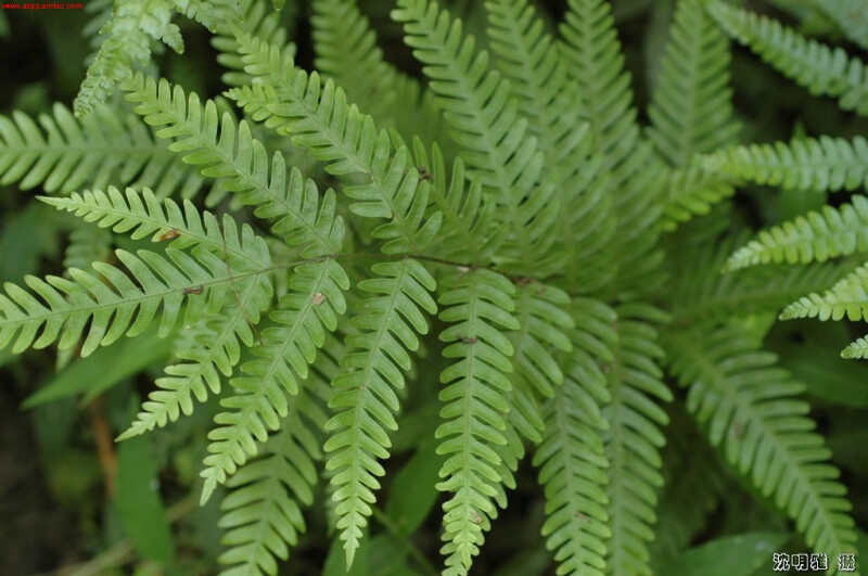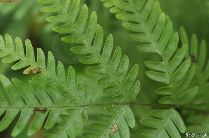 頂羽片羽裂,小羽片呈梳齒狀,游離脈,羽軸兩側之小羽片對稱,羽軸基部上表面無刺,基羽片之基部下側1-數對小羽片長、羽裂,葉柄草桿色。 (郭城孟 1997)