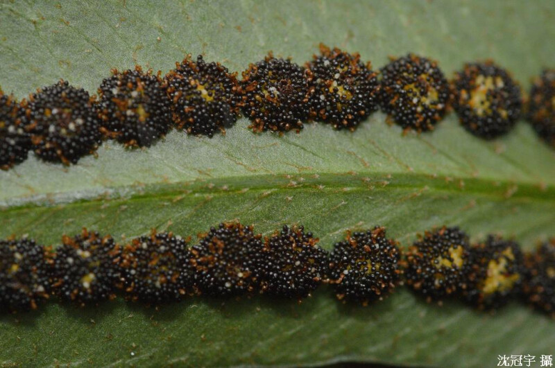 網脈,網眼中具游離小脈,羽片3-6對,7-12cm長,羽軸兩側各具一排孢子囊群。 (郭城孟 1997)