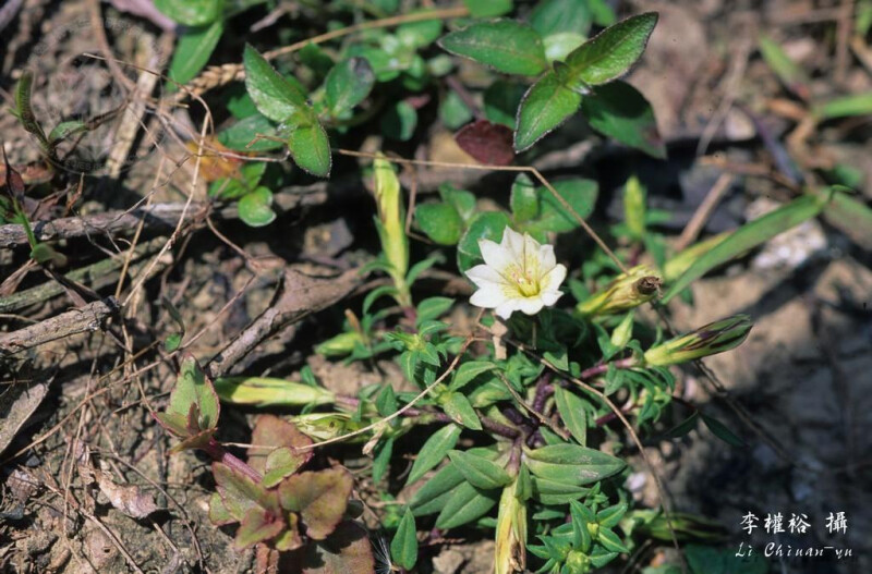一年生草本;莖粗糙,長6-10 cm。基生葉披針形或卵形,長2-2.5 cm,莖生葉與基生葉同形,較小,芒刺狀漸尖頭。花冠鐘形,淡黃白至白色,中部有黃斑;花葯黃至淡粉紅色。果倒卵形。 (楊遠波、劉和義、施炳霖、呂勝由 1999)