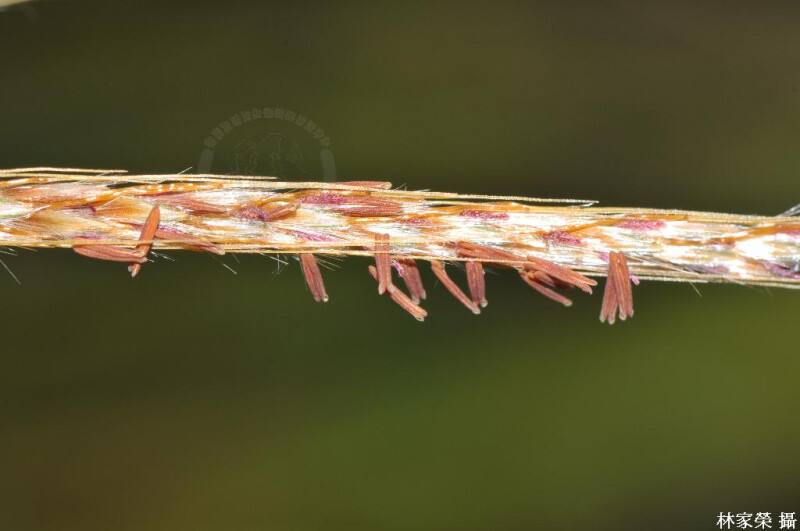 稈高大直立。總狀花序通常5-8枚。無柄小穗長約5.5 mm;外穎上部具2龍骨,邊緣具長毛;芒扭曲。 (楊遠波、劉和義、郭長生、陳志輝 2001)