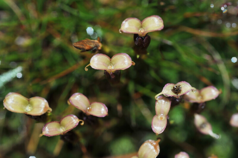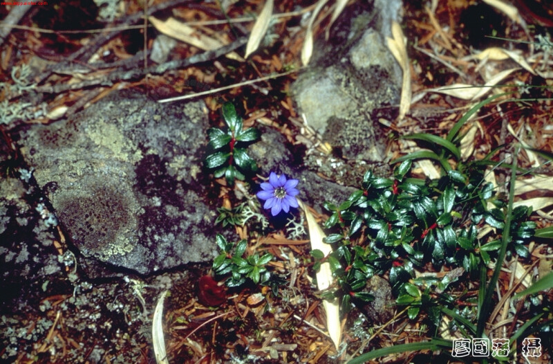 多年生草本,斜立,高3-5 cm,花時高至13 cm;莖常在較上部分枝,常密集叢生。葉內摺,卵形,密生莖上,芒刺狀漸尖頭。花單生枝頂。果倒卵形,長5-7 mm,寬3-4 mm。 (楊遠波、劉和義、施炳霖、呂勝由 1999)