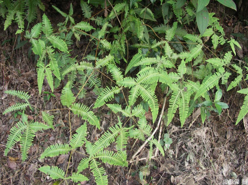 蔓生性,葉背偏白,最末分枝具副枝,軸上的休眠芽有2個小形托葉狀苞片。 (郭城孟 1997)
