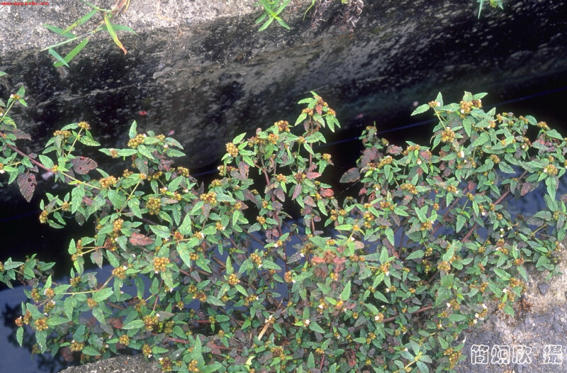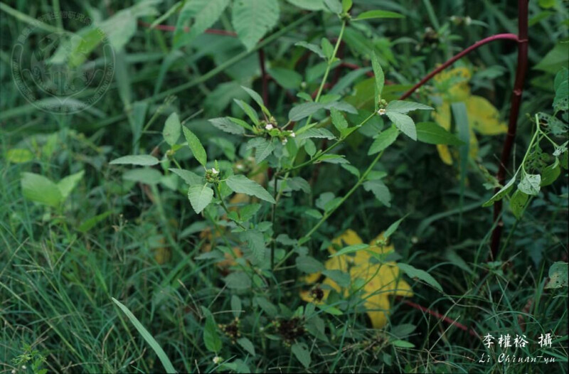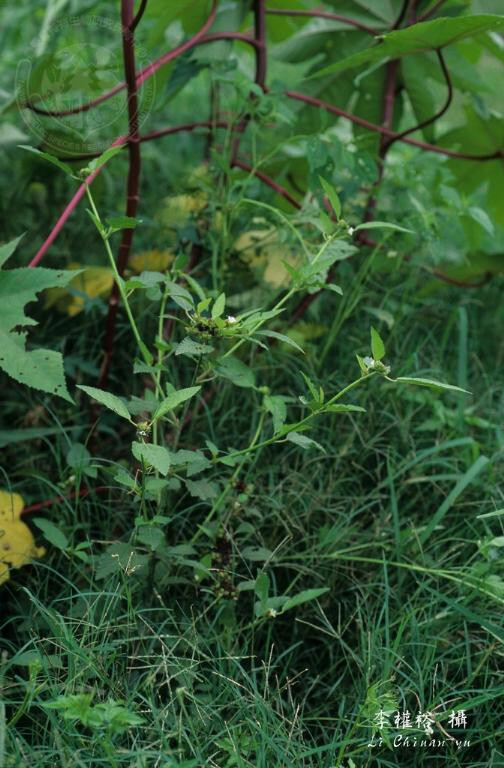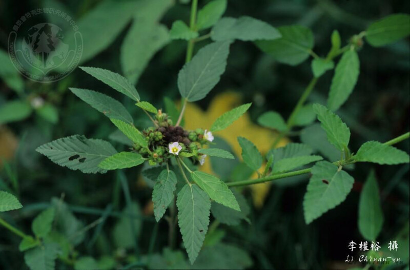 屬特徵- 直立、纖細灌木狀草本。單葉,鈍齒狀鋸齒緣;嫩枝上的托葉明顯。花腋生及頂生,成聚繖狀、頭狀或簇生,偶成繖房狀或圓錐狀,兩性,5數;萼齒狀至深裂,多毛;花瓣5;花柱5。蒴果,5裂。 種特徵- 葉膜質,三角形、寬卵形至披針形,長達9 cm,寬達4.5 cm,較大的葉常成3裂,基部寬楔形至圓形,先端銳尖,5出脈,脈上有毛;托葉長5 mm。花密集似頭狀;花瓣淡紫或白色。果球狀。 (劉和義、楊遠波、呂勝由、施炳霖 1998)