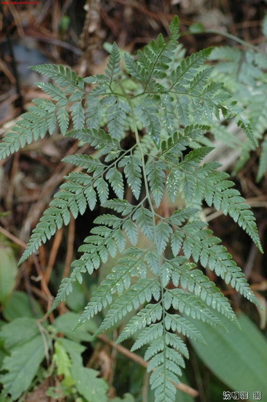 葉革質,長40-50cm,三至四回羽狀裂葉,羽片卵圓形至披針形,邊緣具芒刺。脈上密佈鱗片,裂片銳鋸齒,孢膜腎形,全緣。 (郭城孟 1997)