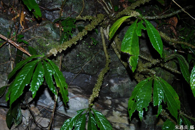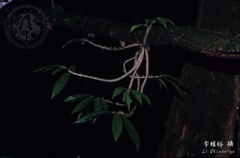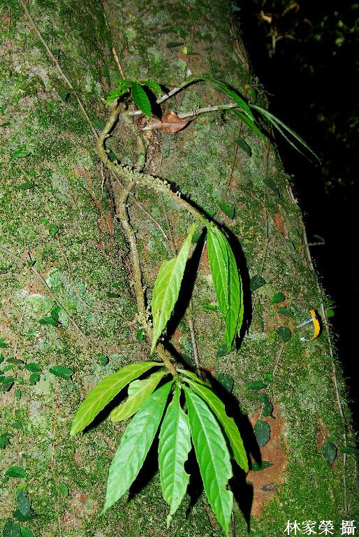 多年生草本或小灌木,著生樹幹或岩石上。莖常為肉質,木質化,具多條縱稜。葉膜質或草質,窄長橢圓形、倒披針形至長橢圓狀倒披針形,長7-15 cm,寬1.5-3.5 cm,先端銳尖至長漸尖,鈍齒緣至近於全緣;對生的退化葉存在,脫落性,長5-20 mm,寬2-5 mm。分布全島低至中海拔地區。 (施炳霖 1997)