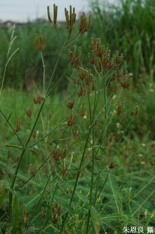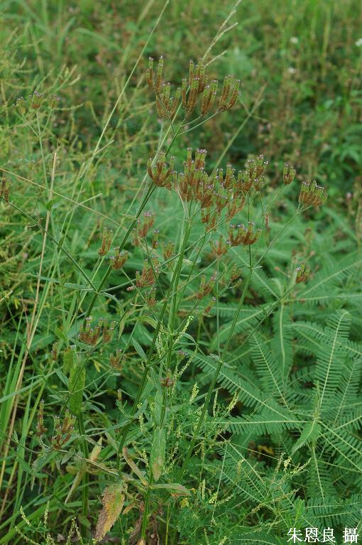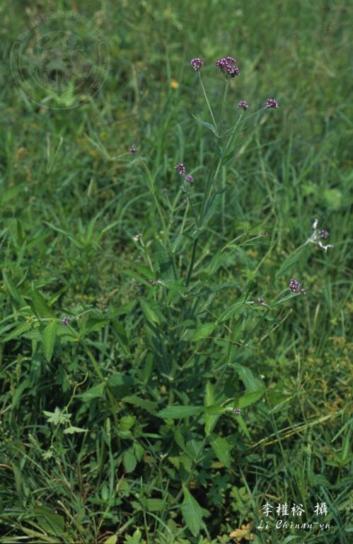 直立草本,莖粗糙,稜上被粗短毛。葉披針形至長橢圓狀披針形,4-14 cm長,2.5-5 cm寬,近基部全緣。穗狀花序呈繖房狀,總苞片披針形。花萼5齒狀,外側被毛;花冠藍至淡紫紅色。果包於宿存花萼內。 (楊遠波、劉和義、施炳霖、呂勝由 1999)