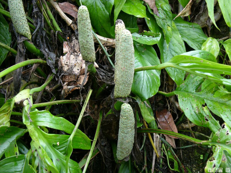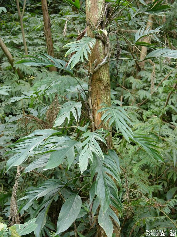屬特徵- 葉全緣,穿孔或羽裂,細脈近平行。花兩性,無花被;雄蕊4,花絲線形;子房1室,胚珠2-4,側膜胎座或近基生。漿果;種子1-8。 種特徵- 攀緣藤本;莖近圓形,直徑2.5-4 cm;葉羽狀深裂,卵狀橢圓形,長30-50 cm ,寬20-35 cm,先端漸尖,基部近心形,裂片12-13對,披針形至略呈鐮刀形,頂端裂片近菱形。佛燄苞歪,長10-12 cm;花序無柄。 本屬在台灣尚有一種為E. formosanum Hayata。由於其花單性,該植物是否屬於本屬,需待進一步研究。 (楊遠波、劉和義、林讚標 2001)