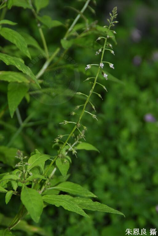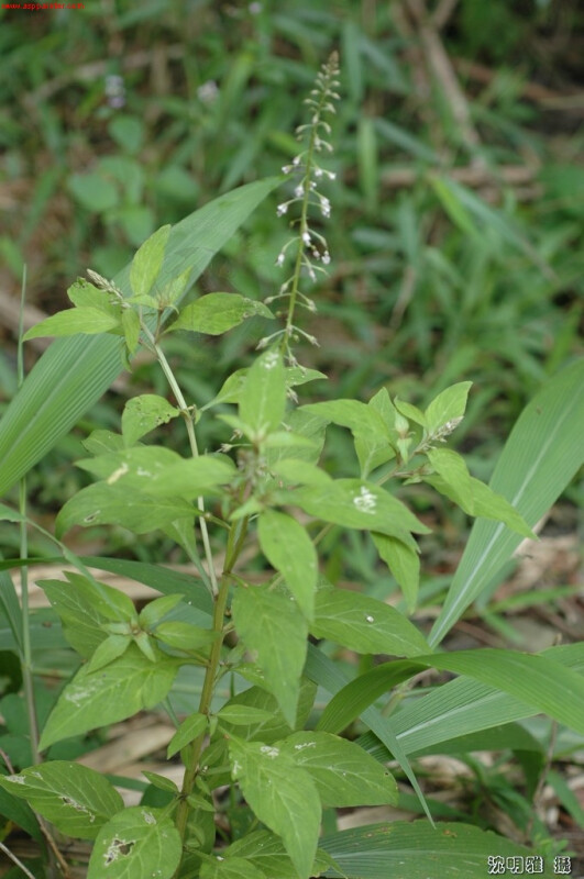 一年生草本;莖直立,高15-80 cm,有微腺毛。葉橢圓、披針至窄卵形,長5-10 cm,漸尖頭,基部漸尖,下表面有細小的暗褐色斑點。總狀花序頂生。花白至淡粉紅,長5-6 mm。果球形,花柱宿存。 (楊遠波、劉和義、施炳霖、呂勝由 1999)