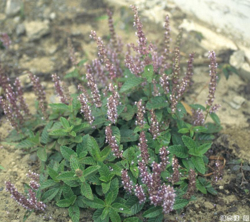 屬特徵: 一年生草本;葉鋸齒緣。頂生狹圓錐狀輪生聚繖花序;花萼鐘型宿存,具明顯橫脈及小凹穴,二唇,上唇3裂,中裂片最長,下唇船形;花冠筒狀,二唇,上唇3裂,中裂片較寬,下唇船形;雄蕊4,稍2強,上方一對花絲近基部具附屬物;子房深4裂,花柱基生。小堅果倒卵形,具線條。 種特徵: 葉片橢圓形至卵形,長3-7 cm,寬1-3 cm,基部楔形,先端銳尖,被細毛或僅背面脈上被毛;葉柄長0.2-1.5 cm。花冠白色或淡紅色。 (楊遠波、劉和義、施炳霖、呂勝由 1999)