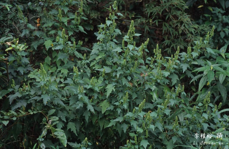 多年生草本至亞灌木;葉對生,長柄,葉片卵形至寬卵形,基部楔形,先端銳尖,不規則缺刻緣,表面疏被微毛,背面被腺點及脈上被微毛。花序鬆散;花冠白色,裂片約相等。 (楊遠波、劉和義、施炳霖、呂勝由 1999)