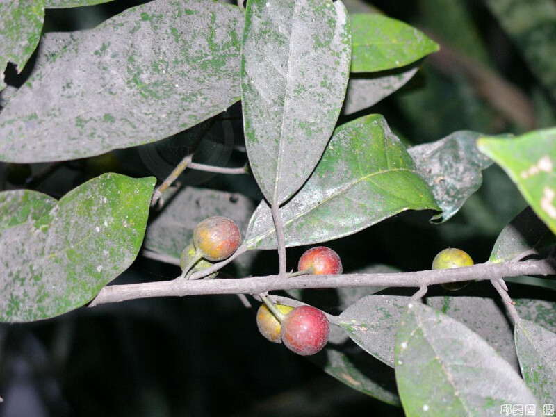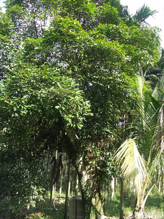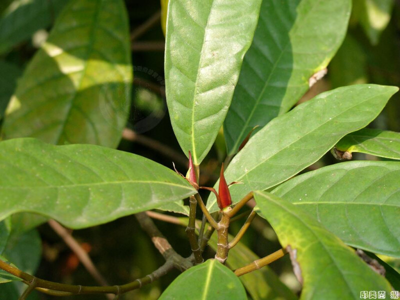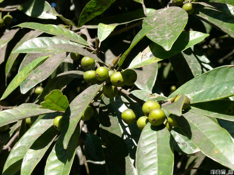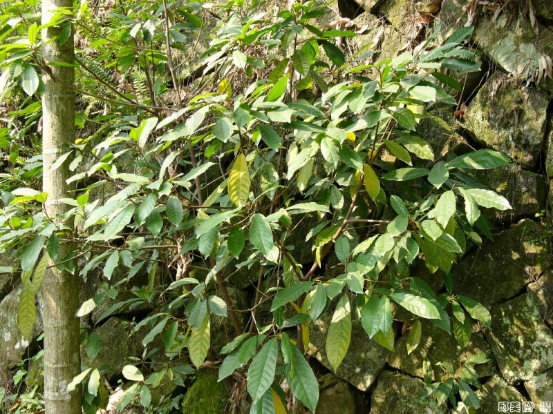 常綠中喬木。葉倒披針形至長橢圓形,先端銳尖,基部楔形或鈍,3出脈,側脈8-11對,柄長1.5-2.5 cm。雌雄同株。隱花果寬1-1.2 cm,熟時黃或紅棕色。 (楊遠波、劉和義、呂勝由 1997)