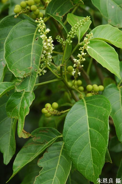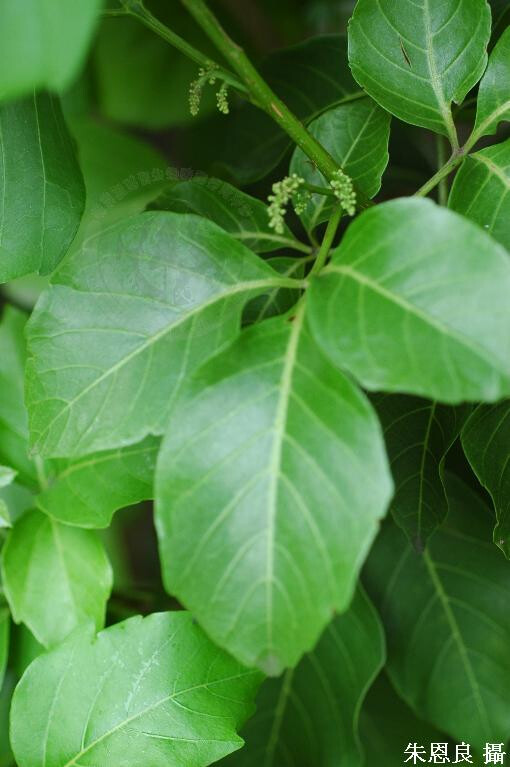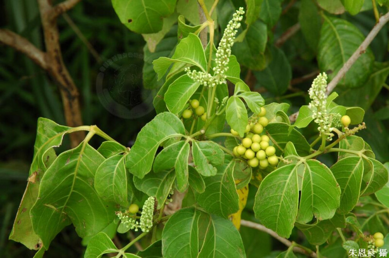 屬特徵- 小喬木或灌木。葉1-3小葉,全緣或鋸齒緣,無托葉。腋生總狀花序在基部時有少數分枝。花雜性至雌雄異株,白或淡黃;萼片兩對,帽狀,覆瓦狀;花瓣4,通常有4腺體與花瓣對生;雄蕊8。果為核果。 種特徵- 小枝有明顯皮孔。葉三出;葉柄長約4 cm;小葉卵形至橢圓形,長8-13 cm,寬5.5-8.5 cm,銳尖頭,疏鋸齒緣至鈍齒緣,兩面無毛。核果卵形,橙色,徑6-8 mm。 (劉和義、楊遠波、呂勝由、施炳霖 1998)