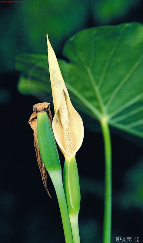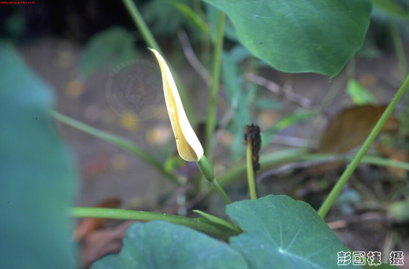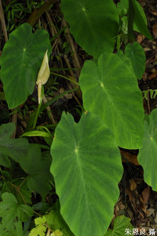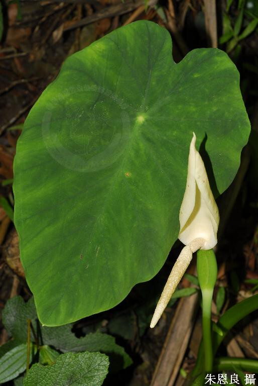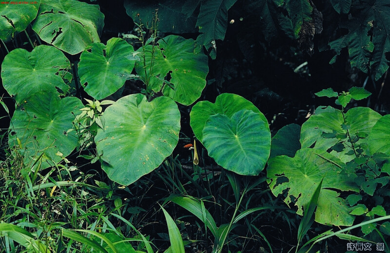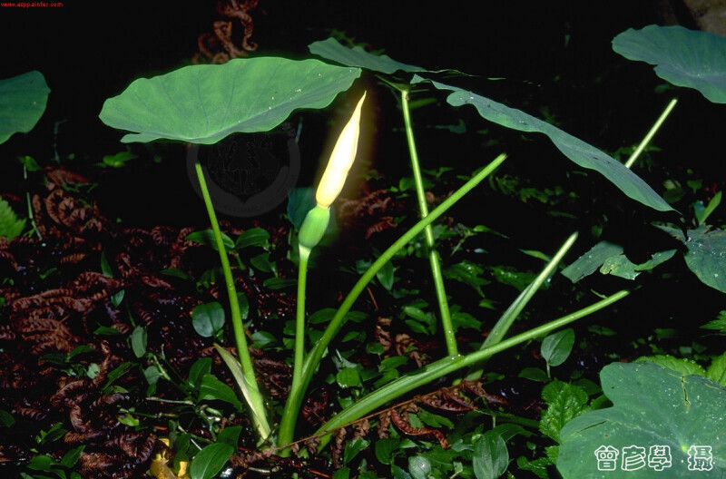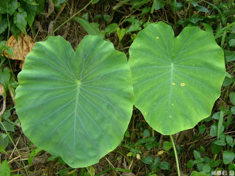 地下莖近直立,長約10 cm。葉片闊卵形或卵心形,盾狀,先端銳尖或圓,基部心形;葉柄綠色。 (楊遠波、劉和義、林讚標 2001)