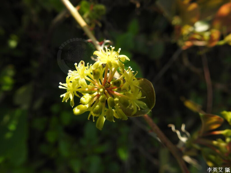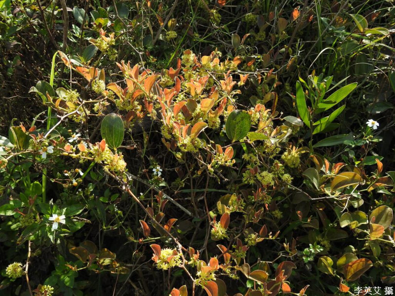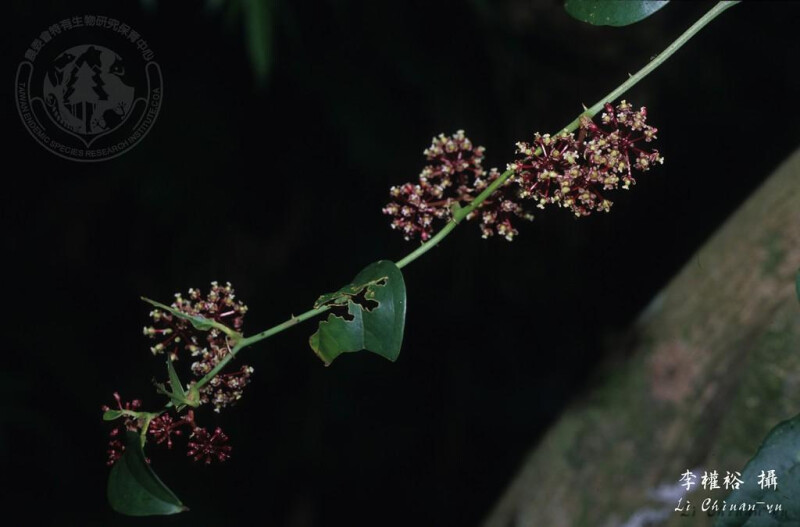 枝略具稜,直至之字形彎曲。葉多卵、圓至闊橢圓形,有時卵狀橢圓形,稀扁圓形,先端圓至略凹,偶短突尖頭;葉柄鞘長約為柄長2/3(鞘上緣具長橢圓形狹翼,翼前端鈍圓形);葉於葉鞘頂端脫落。花被片黃綠色,外輪者卵狀橢圓形,內輪者披針狀長橢圓形。果紫紅色。 (楊遠波、劉和義、林讚標 2001)