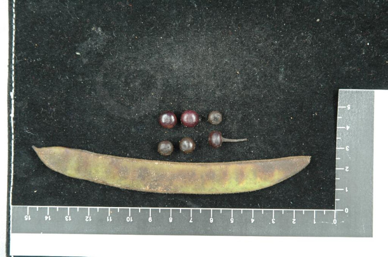 小喬木,幼枝被灰色毛。葉寬卵形至圓形,通常寬大於長,徑6-16 cm,脈11-13,兩面無毛,先端二裂1/4至1/3;裂片通常向中肋彎折,先端圓形。花瓣倒卵形,上方三片邊緣稍重疊或靠近,淺紫紅色或白色。莢果長20-30 cm。 (劉和義、楊遠波、呂勝由、施炳霖 1998)