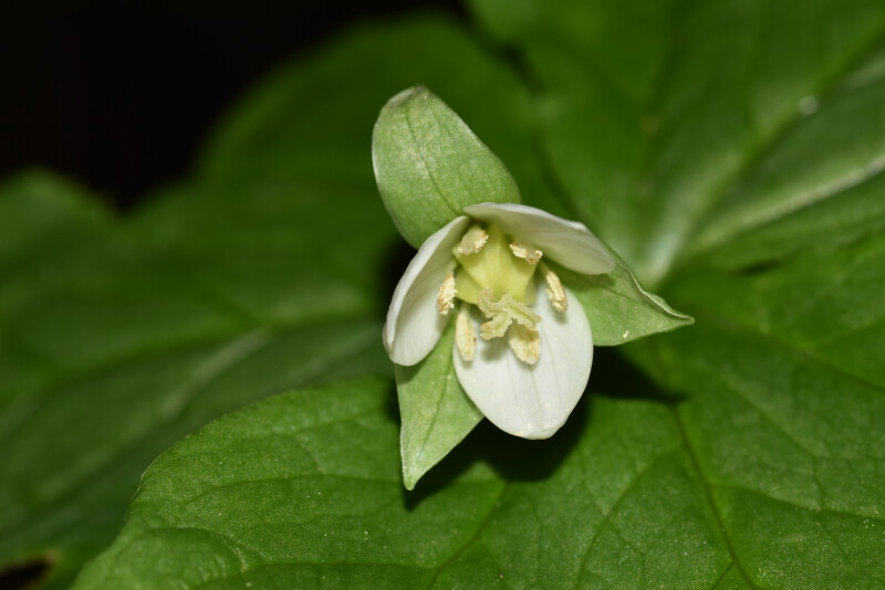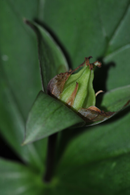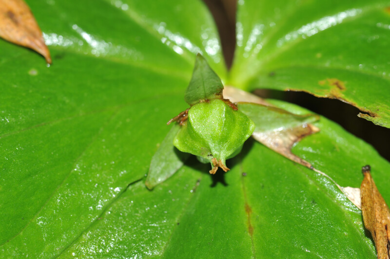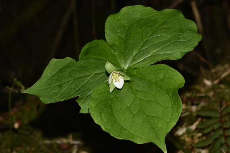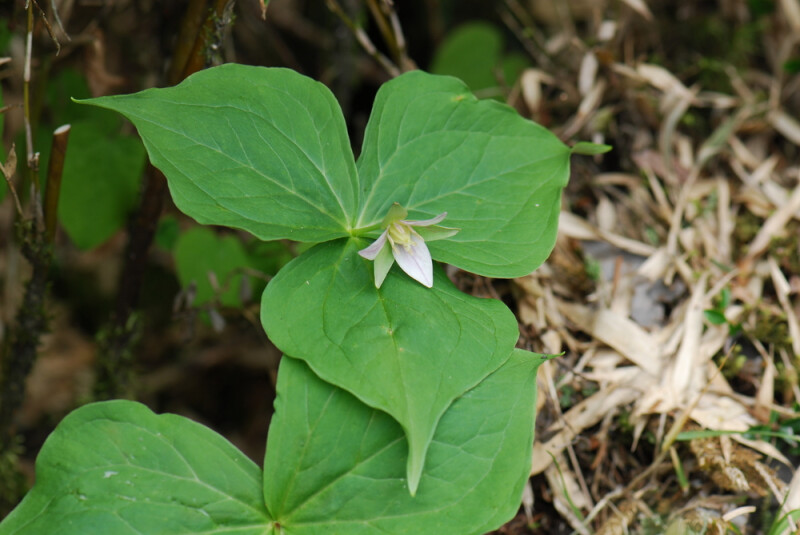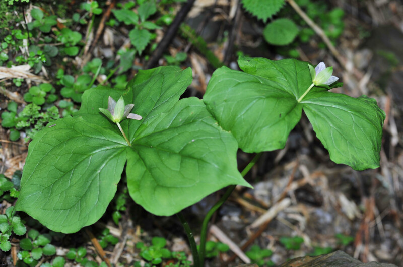 屬特徵- 多年生草本,根莖粗短。地上莖單一,直立或斜昇,基部有1-2枚膜質的褐色鞘葉。尋常葉通常為3,頂生。花單一,頂生;萼片3,綠色,卵形至長橢圓形,宿存;花瓣片3,宿存;雄蕊通常為6,宿存;子房上位,有時具蜜腺;花柱通常單一或離生。漿果或蒴果;種子具假種皮。 種特徵- 葉菱形至菱圓形,長6-15 cm,寬5-15 cm。花梗長1-4 cm;萼片長1.5-2 cm,寬0.5-1 cm;花瓣片卵狀披針形,長1.5-2.5 cm,寬5-11 mm。 (楊遠波、劉和義、林讚標 2001)