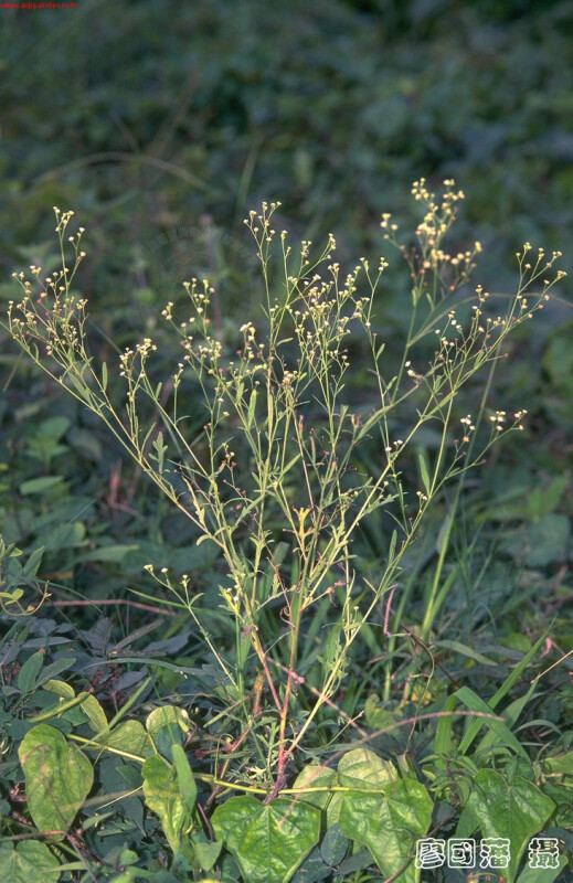 屬特徵:一年生或多年生草本或灌木。葉互生,全緣或羽裂。輻射狀頭花,圓錐狀或繖房狀排列。總苞兩層。總花托具托片。頭花舌狀花5,雌性可稔,花冠小,2或3裂,白色;心花多數,兩性、不稔,花冠白色。每朵雌性舌狀花的瘦果會與1片總苞片、2相鄰不稔的心花,及2至4枚托片癒合形成瘦果複合體(achene complex)。無冠毛或為2或3根芒刺狀冠毛。 種特徵:具主根。一年生草本,莖高30-150 cm,偶可高達2 m,上部多分枝。葉互生,形態及大小變化大,一回羽狀全裂至二回羽裂。頭花直徑3-5 mm。瘦果黑色。 (楊遠波、劉和義、施炳霖、呂勝由 1999)