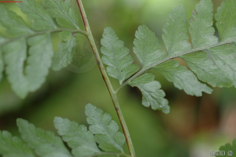孢膜半圓形至杯狀,葉薄草質,羽片邊緣圓鈍,最末裂片孢膜多數。葉二-三回。羽軸和葉軸及小羽片和羽軸斜交。羽片近軸面無毛。孢膜無毛,亞邊緣生,開口朝向小羽片末端,末裂片周緣圓齒。 (郭城孟 1997)