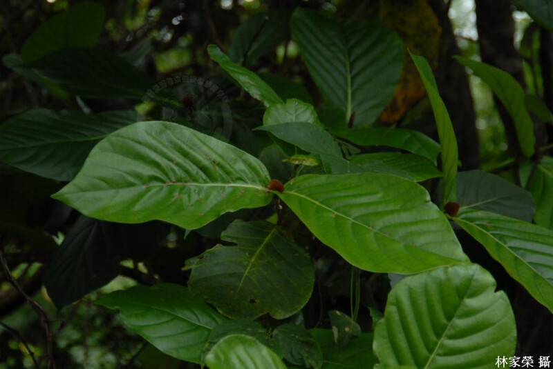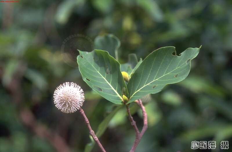屬特徵:喬木。葉對生,薄革質,近無柄,羽狀脈;托葉葉柄間,大型,早落。球形頭狀花序,具2早落苞片;花萼筒狀,裂片5;花冠漏斗狀,裂片5,苞時覆瓦狀;雄蕊冠筒上方著生,內藏;花柱突出甚多,柱頭頭狀,子房2室,胚珠多數。蒴果。 種特徵:葉倒卵形至寬橢圓形,長14-26 cm,無毛。花白色。 (楊遠波、劉和義、施炳霖、呂勝由 1999)