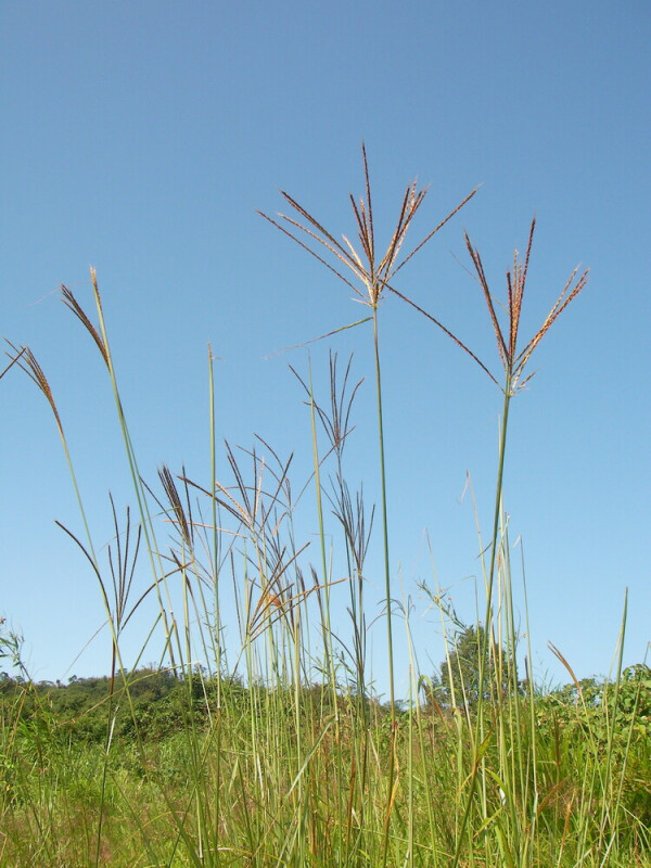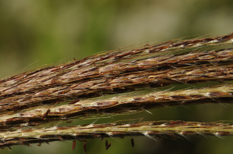 稈硬質,直立。總狀花序通常3-4枚;穗軸被白毛。無柄小穗長約6 mm;外穎上部具2龍骨,其上具纖毛;芒扭曲,邊緣長毛。 (楊遠波、劉和義、郭長生、陳志輝 2001)