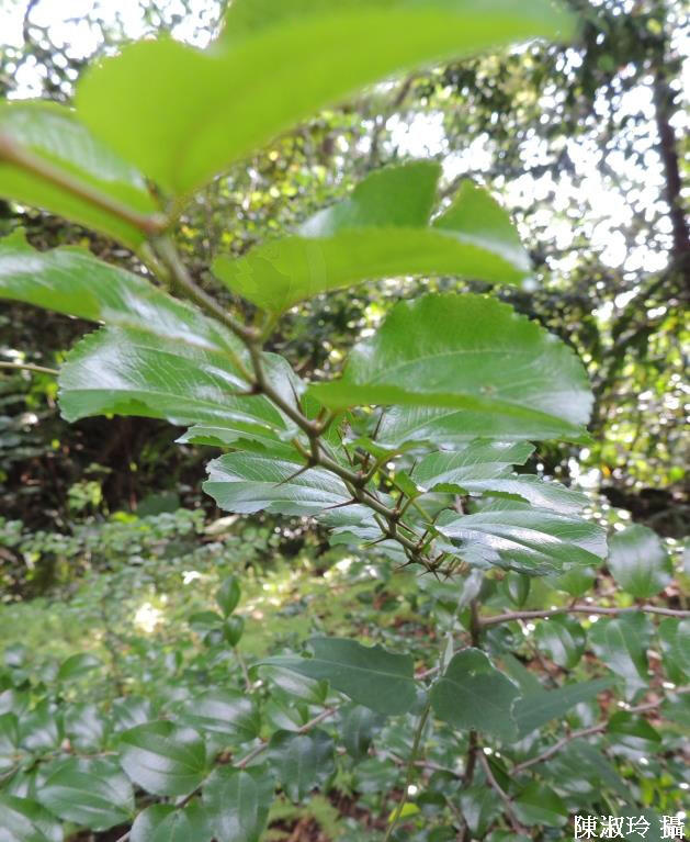 屬特徵- 灌木;枝具刺。葉基3出脈;托葉常呈刺狀。聚繖花序。花兩性;萼片5;花瓣5;雄蕊5;子房部份埋於花盤中,3室。堅果 種特徵- 幼枝被銹色絨毛。葉卵至長橢圓形,兩端鈍,鋸齒緣,光滑,下表面灰色。果倒圓錐形。 (劉和義、楊遠波、呂勝由、施炳霖 1998)