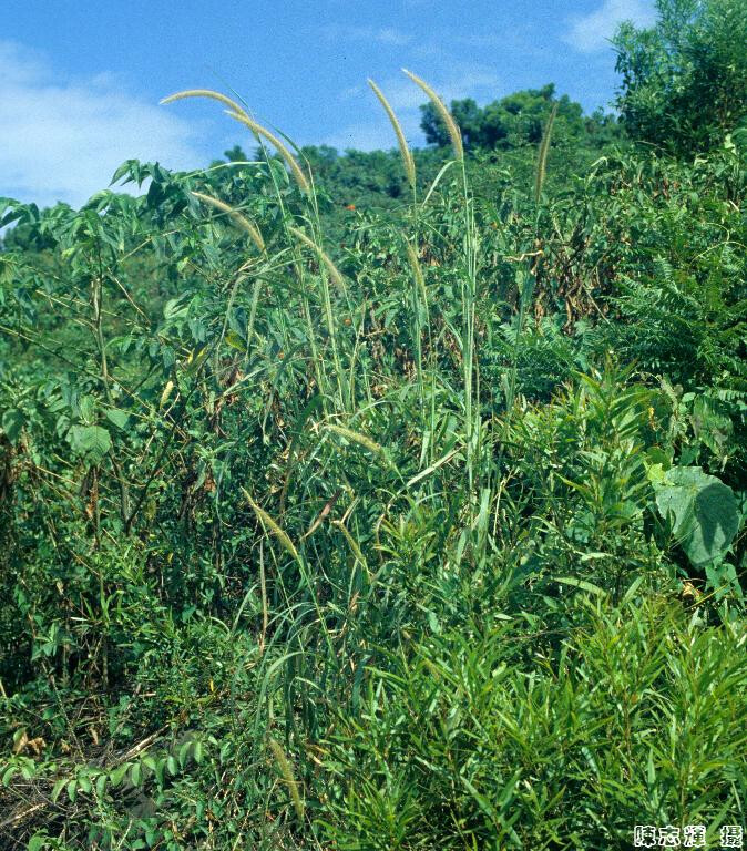 多年生;稈扁壓,叢立。葉片長30-60 cm,寬5-8 mm,常內捲,帶粉白色。圓錐花序長10-15 cm。小穗長約7 mm;上位外稃半透明質。 (楊遠波、劉和義、郭長生、陳志輝 2001)