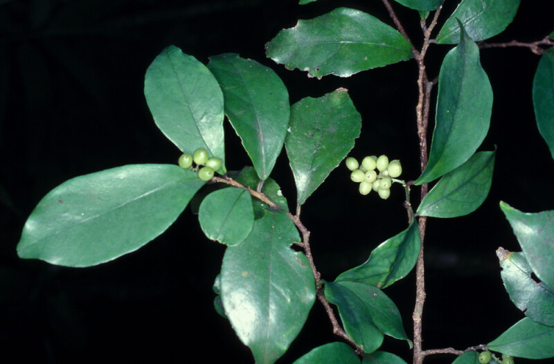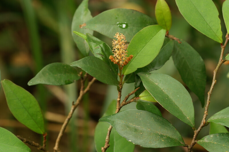 葉革質,倒卵形至長橢圓狀倒卵形,先端略尾狀,具鈍頭。 (劉和義、楊遠波、呂勝由、施炳霖 1998)