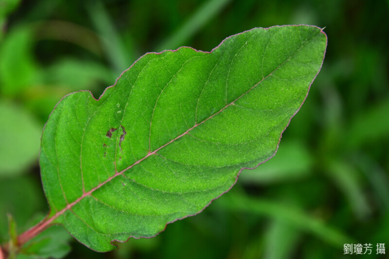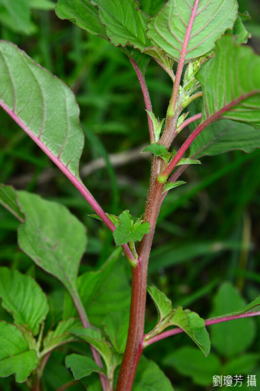 莖略呈紅色,光滑或略被軟毛。葉卵形至菱形,先端銳尖或近鈍,下表面脈上被灰毛。花被片與雄蕊 5。原產熱帶美洲。生長於荒廢地。 (楊遠波、劉和義、呂勝由 1997)