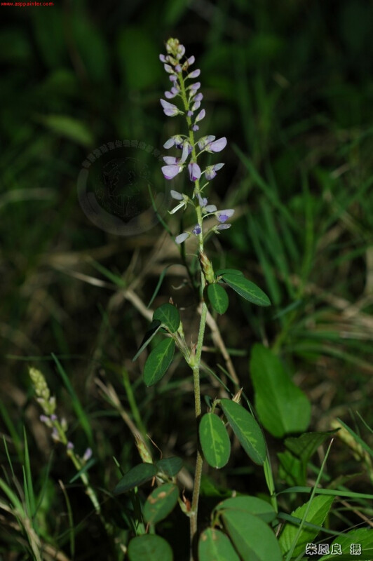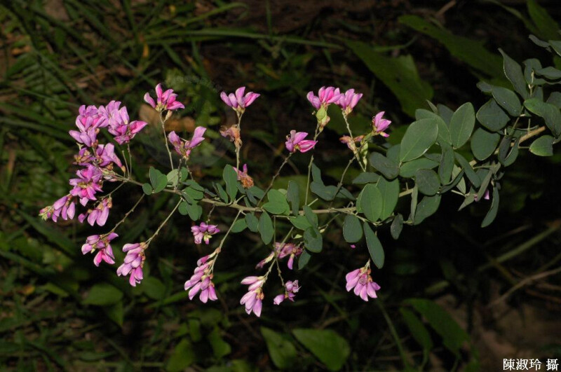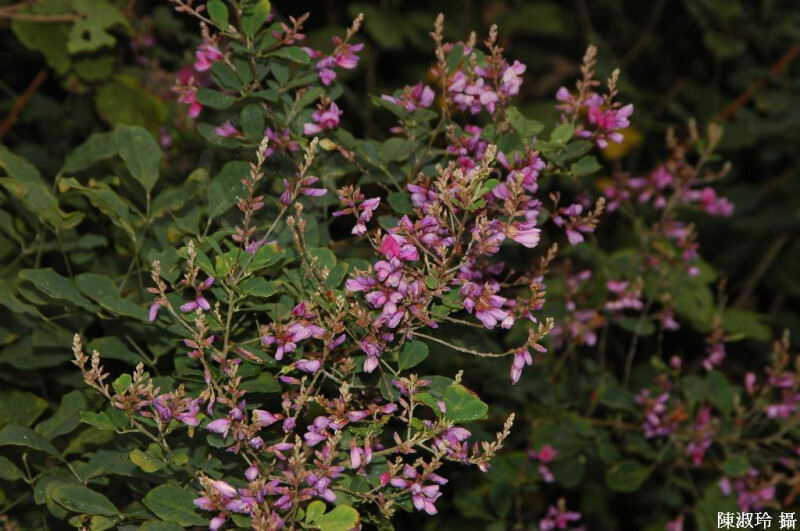 屬特徵-落果性灌木,被絹毛。三出葉,剛毛狀托葉宿存,無小托葉。腋間總狀花序或頂生圓錐花序。花萼鐘型,萼片5深裂,底部者最長。花瓣蝶型,紫色。兩體雄蕊,9+1。莢果彎曲,具喙,表面具網紋,邊緣有毛,種子1 粒。 種特徵-小葉倒卵形至橢圓形,長2-3 cm,先端微凹,但具中肋突出。 (劉和義、楊遠波、呂勝由、施炳霖 1998)