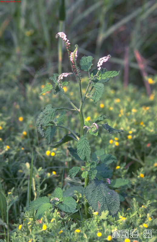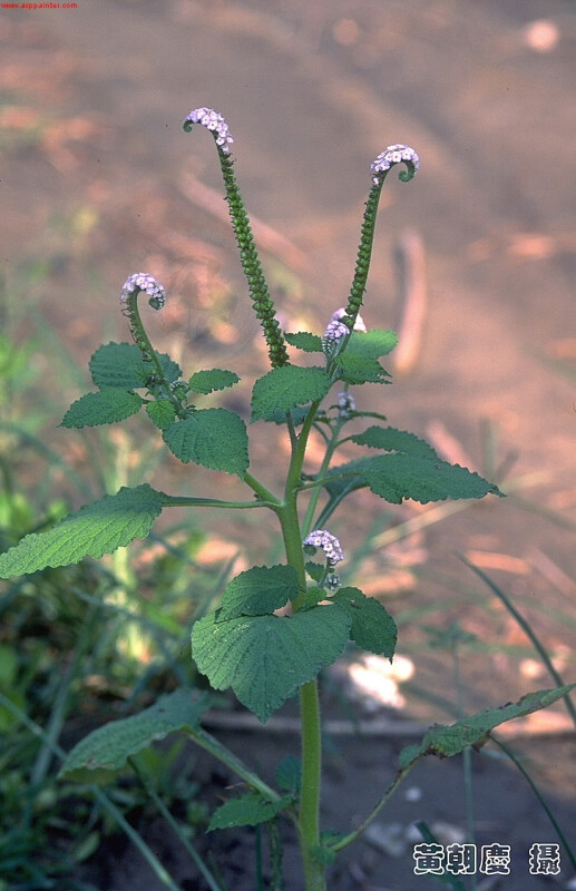 一年生直立草本;全株被剛伏毛。葉互生至近對生,卵形,長2-10 cm,柄長2-8 cm。花瓣淺藍色至藍紫色。核果深二裂。 (楊遠波、劉和義、施炳霖、呂勝由 1999)