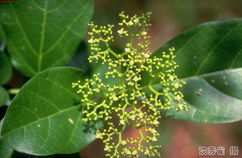 灌木或小喬木,小枝近無毛。葉長橢圓形至 長橢圓狀卵形,6-12 cm長,4-6 cm寬,中肋略被毛,下表面具腺點,側脈4-7對。花萼二唇形,4-5裂;花冠淡綠白色,外側無毛,內側被絨毛。果球形,暗紫色。 (楊遠波、劉和義、施炳霖、呂勝由 1999)
