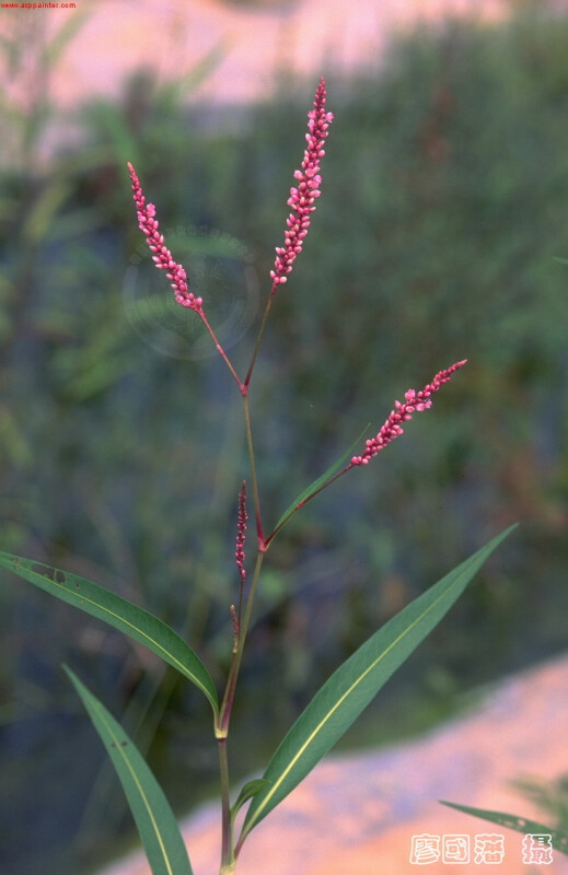 莖光滑,徑粗,常呈紅色。葉披針形,下表面具腺點;葉柄常呈紅色。葉鞘管狀,無緣毛。花序穗狀,小花排列緊密。花紅色。 (楊遠波、劉和義、呂勝由 1997)