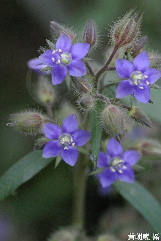 科特徵:草本或稀亞灌木,常有腺毛及芳香或粗毛。葉大多互生,稀對生,單葉至羽裂或羽狀複葉,稀掌狀複葉。花序為偏側聚繖或假總狀。花兩性,整齊,5數;花冠輪狀至鐘形,通常5裂;花柱1或2;柱頭頭狀。蒴果2-4瓣或不規則裂。 屬特徵:草本或亞灌木,有時具腺毛或刺。葉互生,全緣。花藍色,通常成聚繖或短總狀;花冠寬鐘形或近輪狀;花柱2。果球形,2-4瓣。 種特徵:一年生草本,高30-45 cm。葉形及大小變異大,披針形至長橢圓形或橢圓形,長2-10 cm,銳尖頭,有時具緣毛,基部銳尖或漸細。花單生及對生或排成總狀或圓錐狀;花冠藍色,略帶淡紅色。果長4-5 mm。 (楊遠波、劉和義、施炳霖、呂勝由 1999)