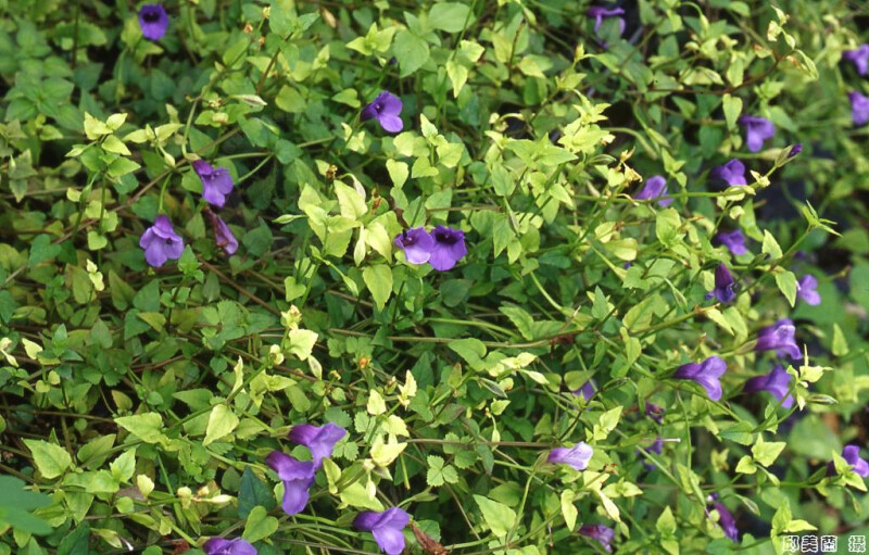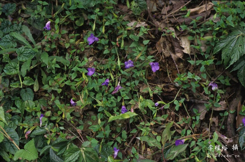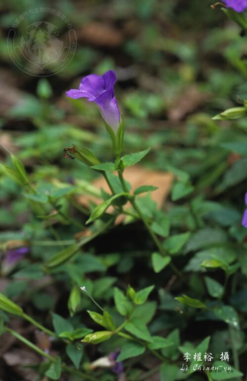 多年生匍匐性草本。葉卵形至三角卵形,長2-5 cm。萼片花時長15-20 mm,果時長25-40 mm;花冠深藍色或白色,長25-40 mm,無毛。 (楊遠波、劉和義、施炳霖、呂勝由 1999)