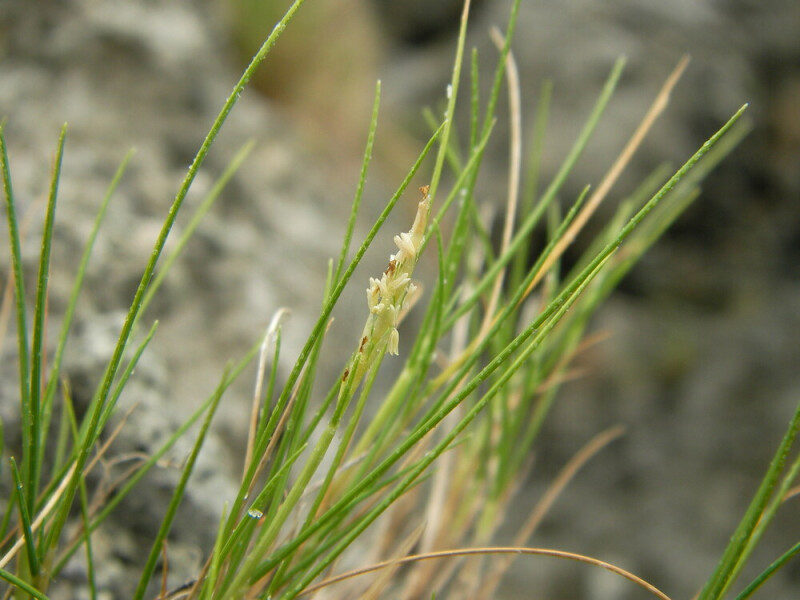 稈密叢生。葉片絲狀,長4-5 cm,窄於1 mm。內穎外表面脊上被微刺毛,具5脈。 (楊遠波、劉和義、郭長生、陳志輝 2001)