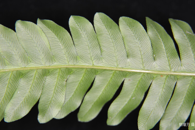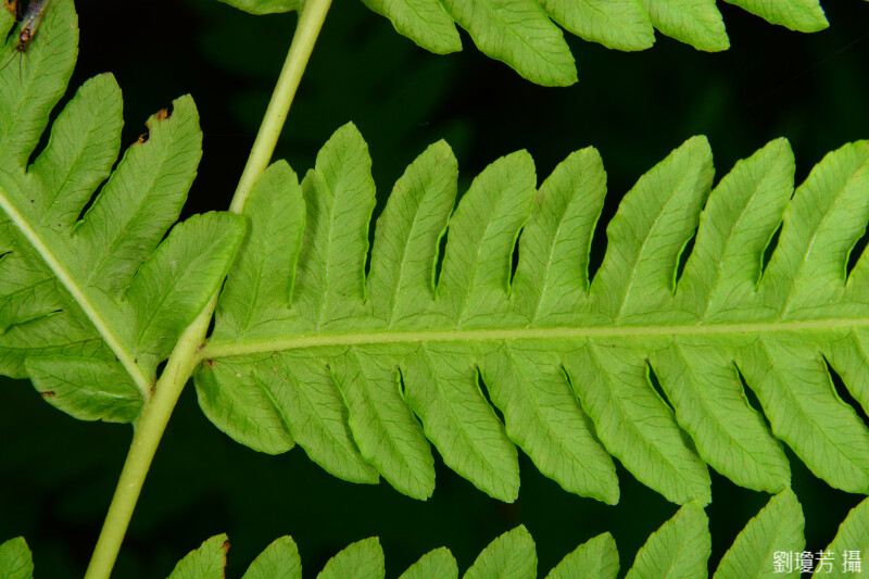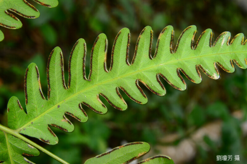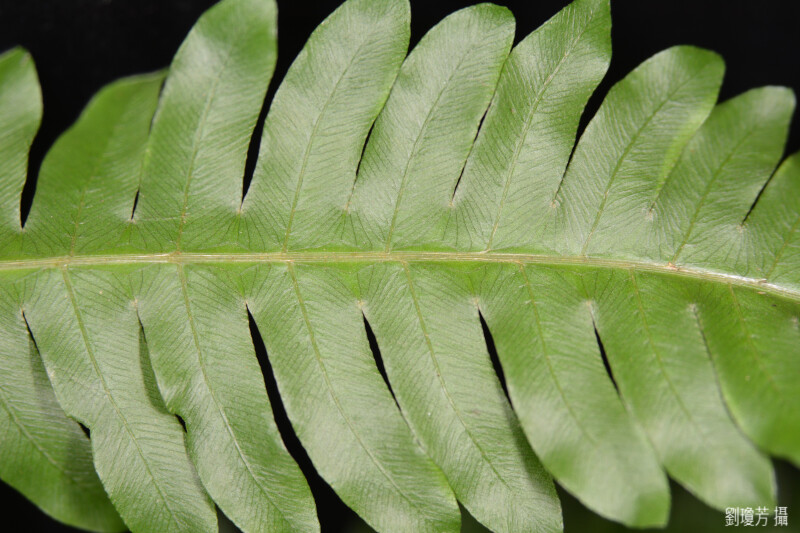 頂羽片羽裂,小羽片呈梳齒狀,網脈,僅一排網脈,網眼為弧形。 (郭城孟 1997)