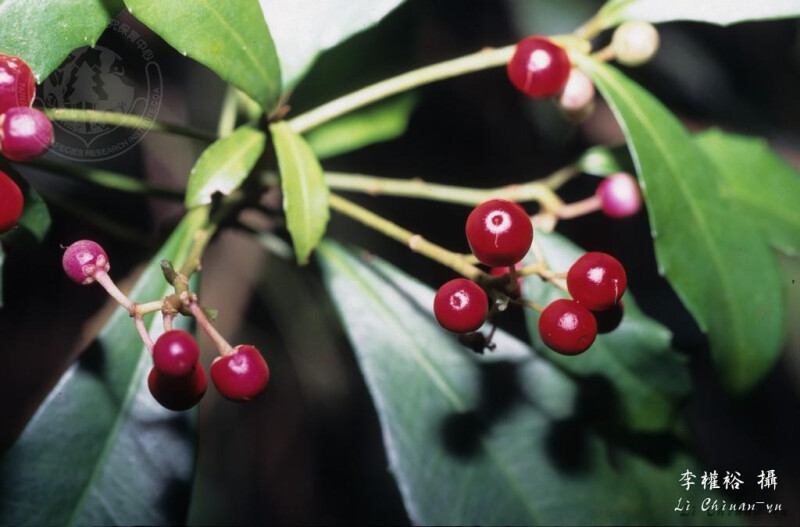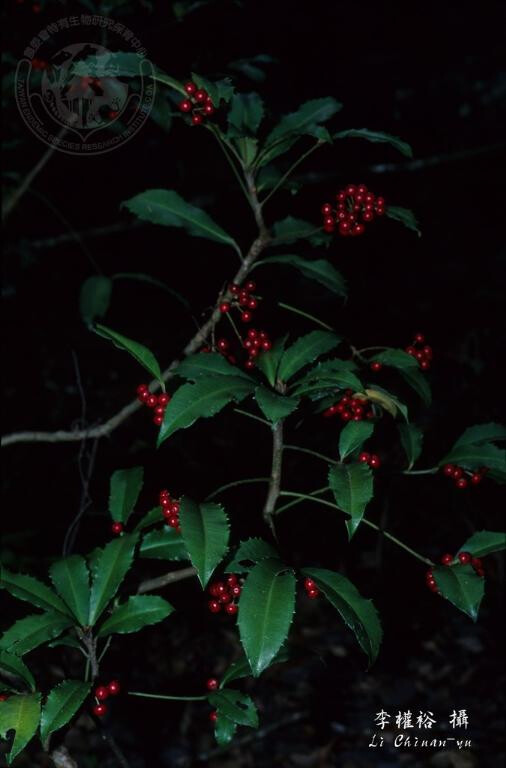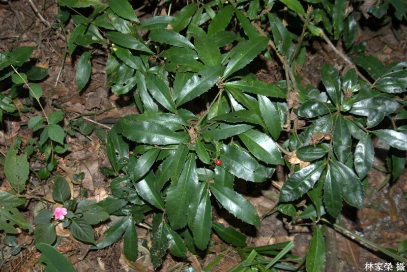 Ardisia cornudentata subsp. morrisonensis (Hayata) Yuen P.Yang 玉山紫金牛