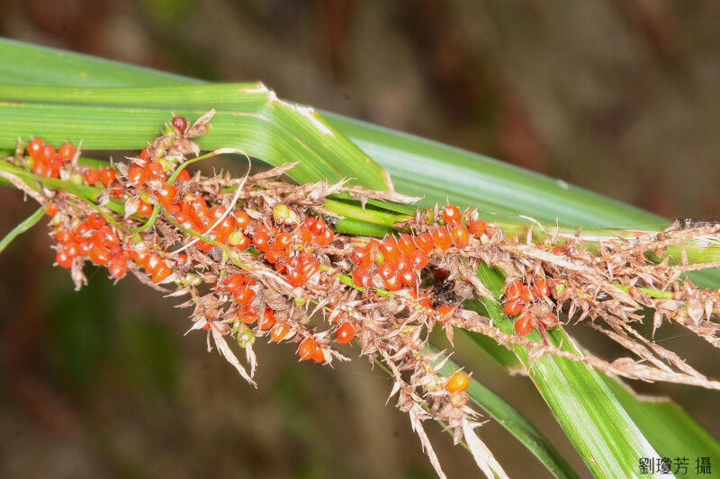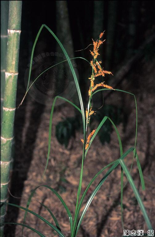 根莖木質,粗狀。稈近叢生,高60-150cm,橫截面三角形。葉莖生,寬5-18 mm。花序圓錐狀;葉狀總苞具鞘;小穗圓筒形,兼具雌雄花,雄花在上,長2-6 cm;雌鱗片倒卵形,長2.5-3.5 mm,頂端尖;柱頭3。果囊膨脹,長3.5-4.2 mm,光滑,近圓形;瘦果長2.75-3 mm,橢圓形,橫截面三角形。 (梁慧舟 2001)