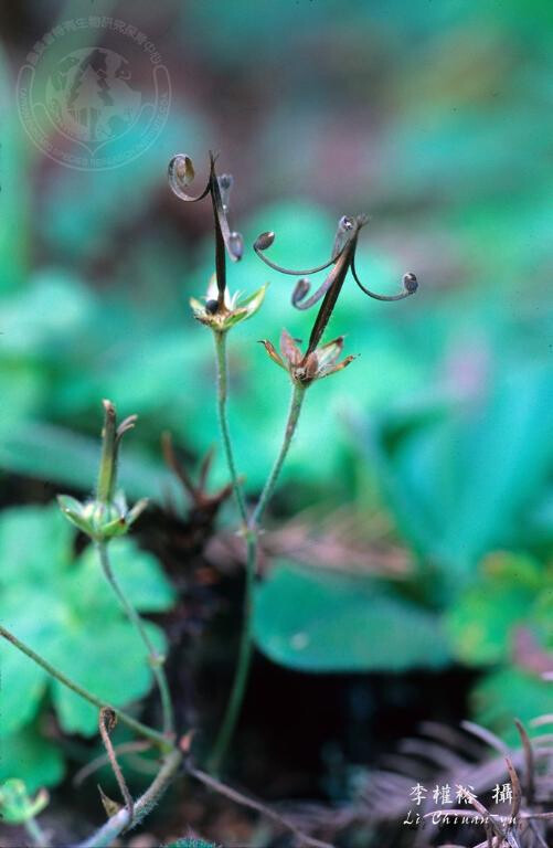 具走莖,被疏柔毛。葉圓形,3-5深裂。花單生;花梗長0.6-6.2 cm。 (劉和義、楊遠波、呂勝由、施炳霖 1998)