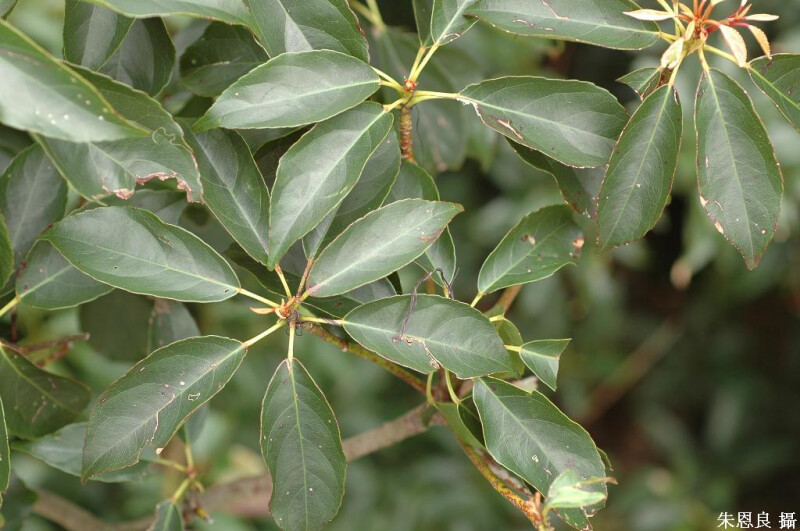 葉薄革質,橢圓或長橢圓形,不明顯圓齒緣,側脈5-6對;葉柄長2-3 cm。花序略被毛或近光滑;萼片卵狀長橢圓形;花瓣無緣毛;雄蕊少於10。 (劉和義、楊遠波、呂勝由、施炳霖 1998)