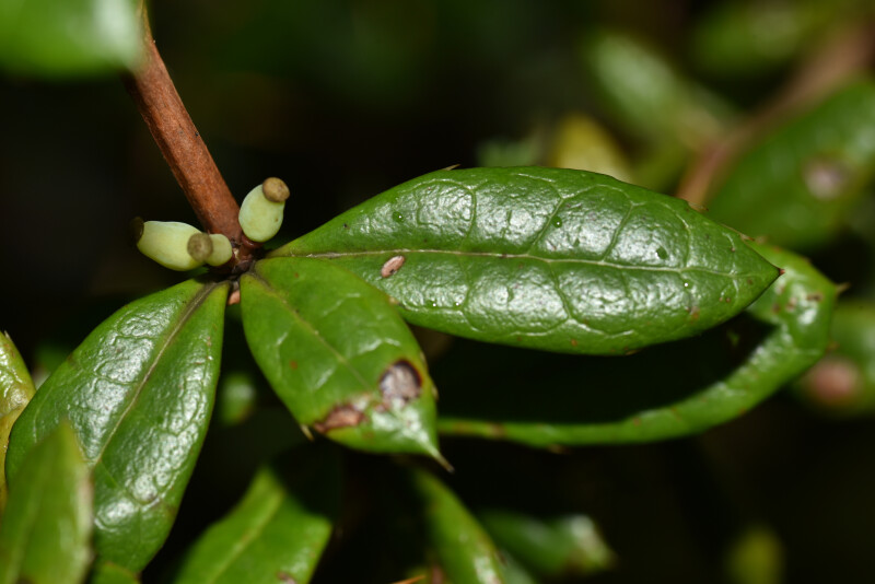 常綠灌木。葉3-5片叢生,幾無柄,革質,倒卵形至倒披針形,鋸齒2-4對。花2-5朵叢生。果闊橢圓形,宿存柱頭無柄。 (楊遠波、劉和義、呂勝由 1997)
