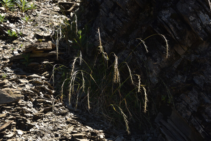 稈高60-70 cm。葉片線形,長約20 cm;葉舌亞革質,先端圓形,長0.1-0.5 mm。總狀花序長10-15 cm。小穗具6朵小花,長約2 cm;穎亞革質,長橢圓形至狹披針形;外穎長5-6 mm,5脈;內穎長6-8 mm,5-7脈;外稃亞革質,長橢圓形,5脈,芒長約20 mm,多彎曲;內稃線形至長橢圓形,長約9 mm。 (楊遠波、劉和義、郭長生、陳志輝 2001)