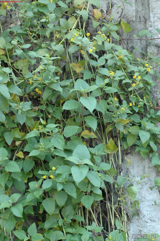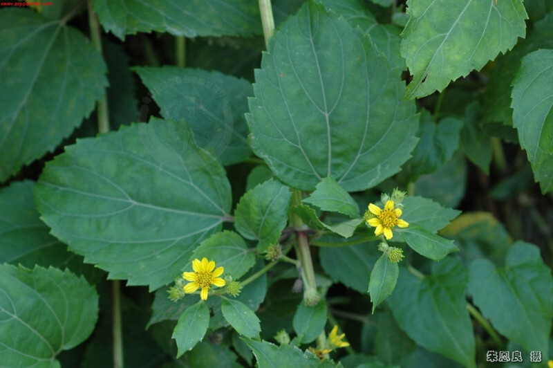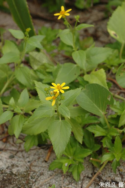 亞灌木,莖4稜形,全株被伏貼的粗毛。葉厚紙質,闊卵形,葉緣齒狀,三出脈,葉柄長1.2-2.3 cm。頭花3-6,直徑2-3 cm,總梗長1.5-5.5 cm;舌狀花1層,花冠黃色。瘦果3稜。 (楊遠波、劉和義、施炳霖、呂勝由 1999)