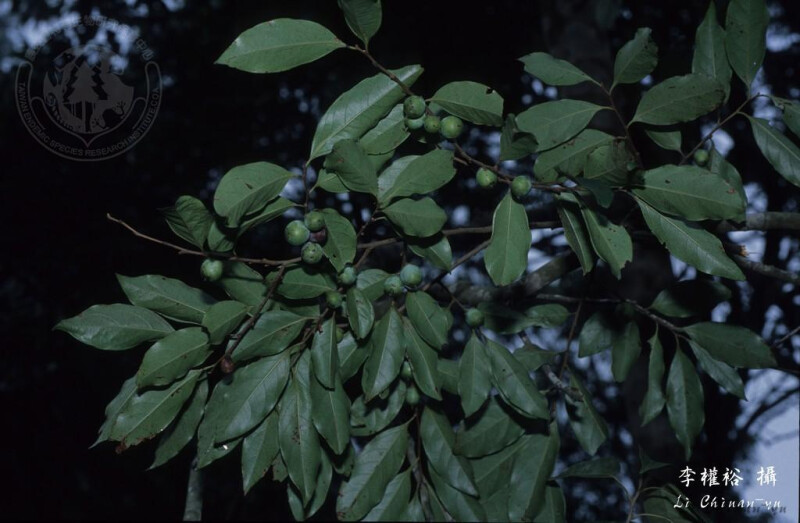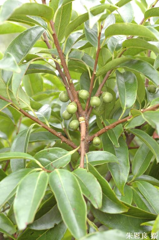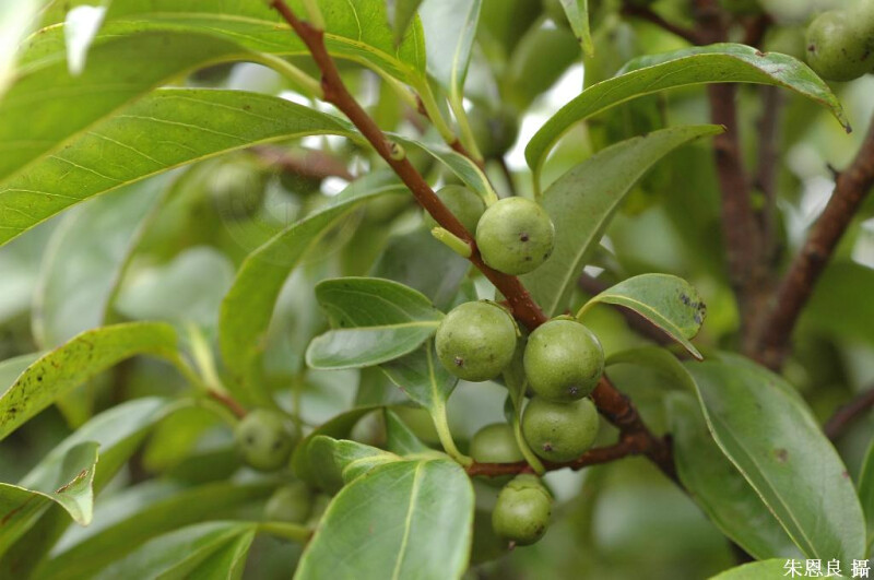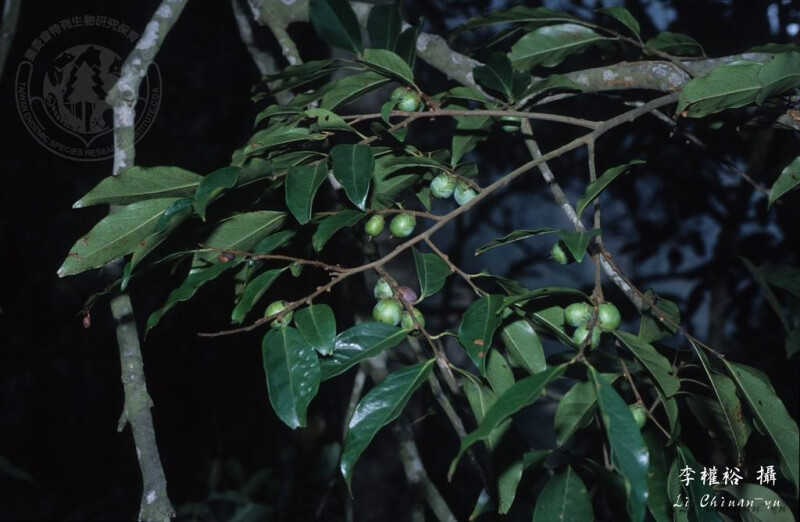 ,長7-10 cm,先端漸尖,上表面光滑,下表面光滑或沿中脈略被短毛。果球形,直徑約1.5 cm。 (楊遠波、劉和義、施炳霖、呂勝由 1999)