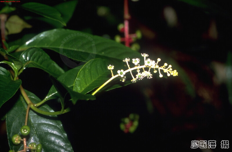 葉長橢圓形或卵狀長橢圓形;葉柄長 3-4 cm。 (楊遠波、劉和義、呂勝由 1997)