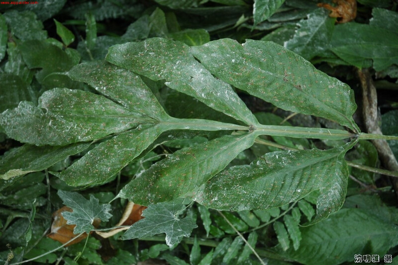 葉一回深裂,葉軸及柄有翅,具2-5對側羽片,基羽片基部下側裂片長。網脈,網眼具游離小脈。羽軸、葉軸光滑,幾乎無毛。 (郭城孟 1997)