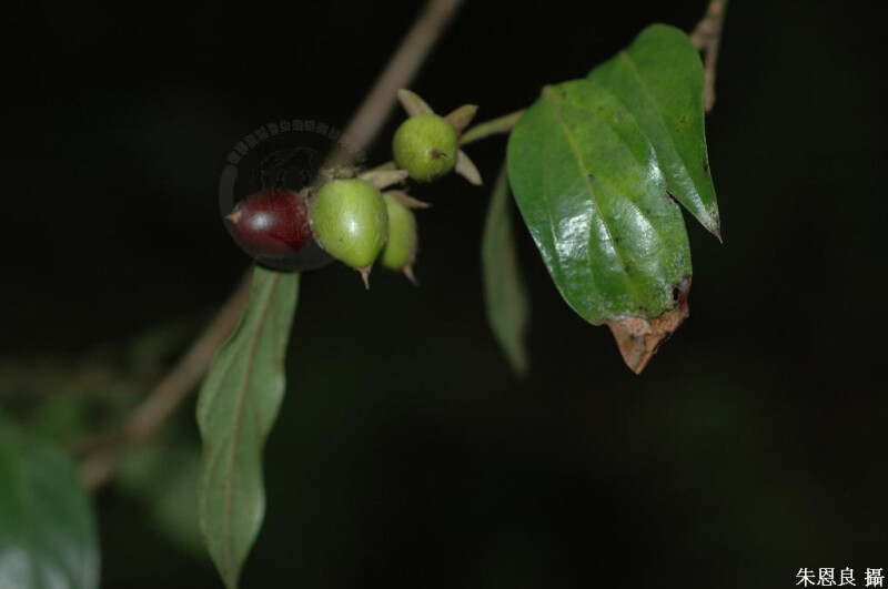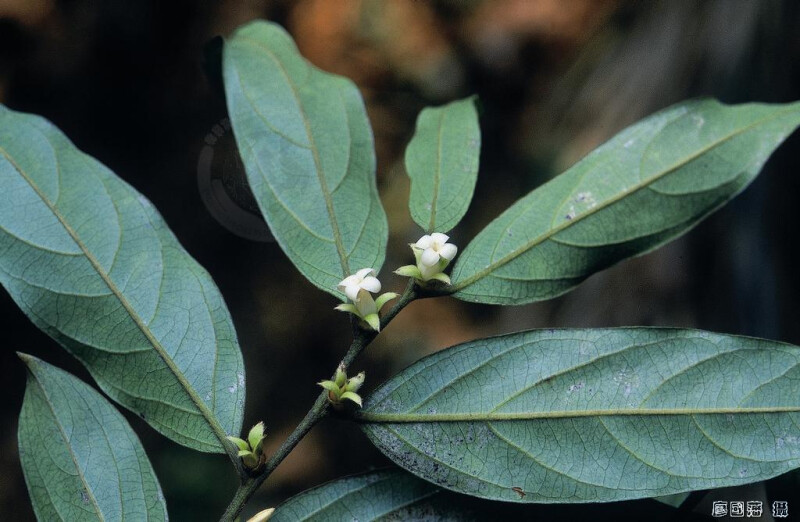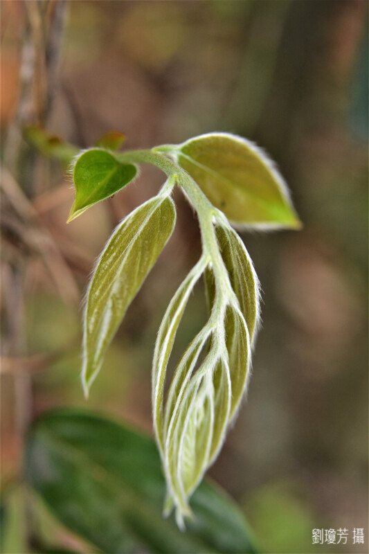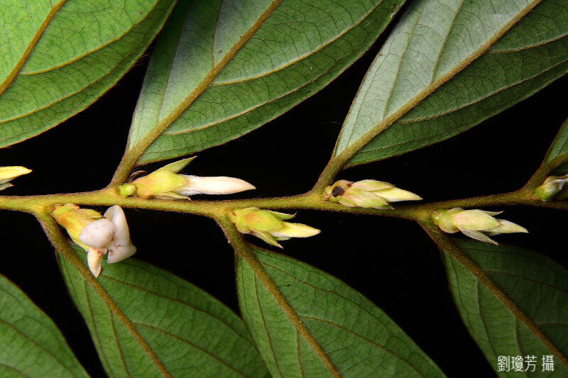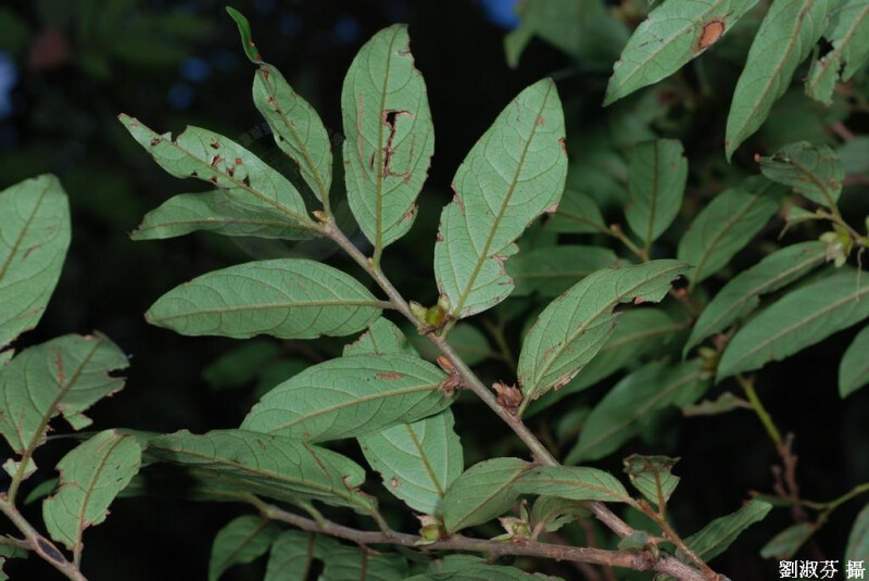 常綠喬木;小枝被褐色絨毛。葉薄紙質,長橢圓狀披針形,長7-10 cm,先端銳尖至漸尖,上表面光滑或被疏柔毛 (中脈),下表面脈上被絨毛,側脈4-5對;葉柄長2-4 mm。果卵形,被長柔毛,長1.5-2 cm。 (楊遠波、劉和義、施炳霖、呂勝由 1999)