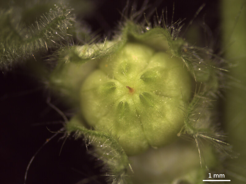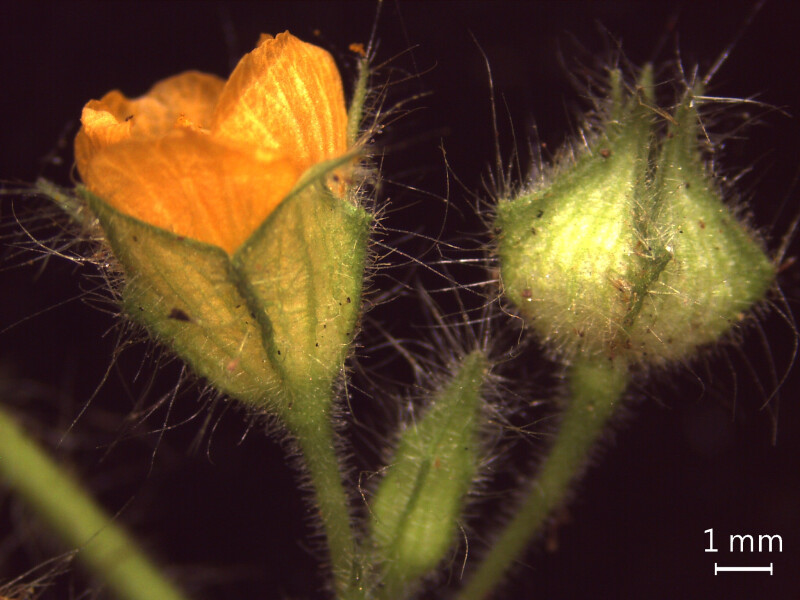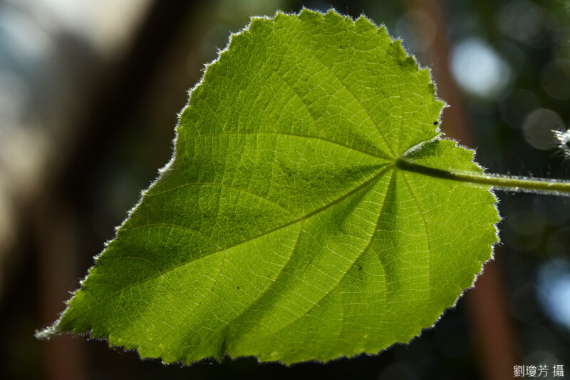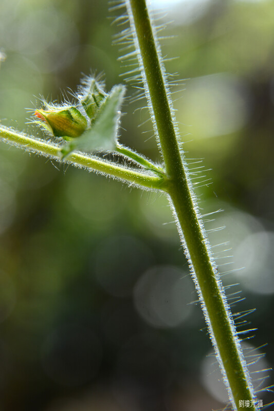 直立亞灌木。葉卵或圓形,長5-7 cm,寬4-6 cm,基部心形,兩面被星狀毛。萼密被毛;花梗長5-12 mm。成熟心皮5,上端無芒刺。 (劉和義、楊遠波、呂勝由、施炳霖 1998)